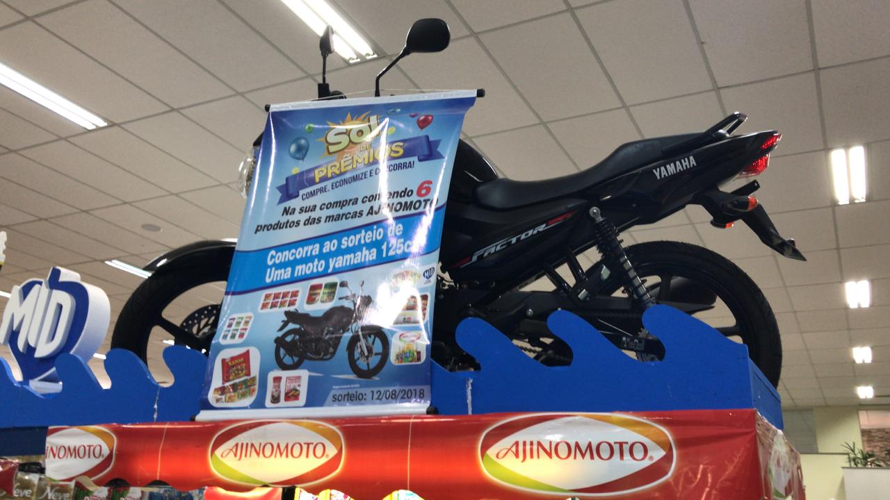 Os clientes do Supermercado Sol, localizado na Avenida Brasil, 1799 no Centro de Ponta Porã para ganharem um cupom para concorrer ao sorteio da Moto Yamaha 150 cilindradas zero km precisam comprar produtos da marca Ajinomoto entre eles, Suco MID, Sazon que são produtos da Distribuidora Ikeda.